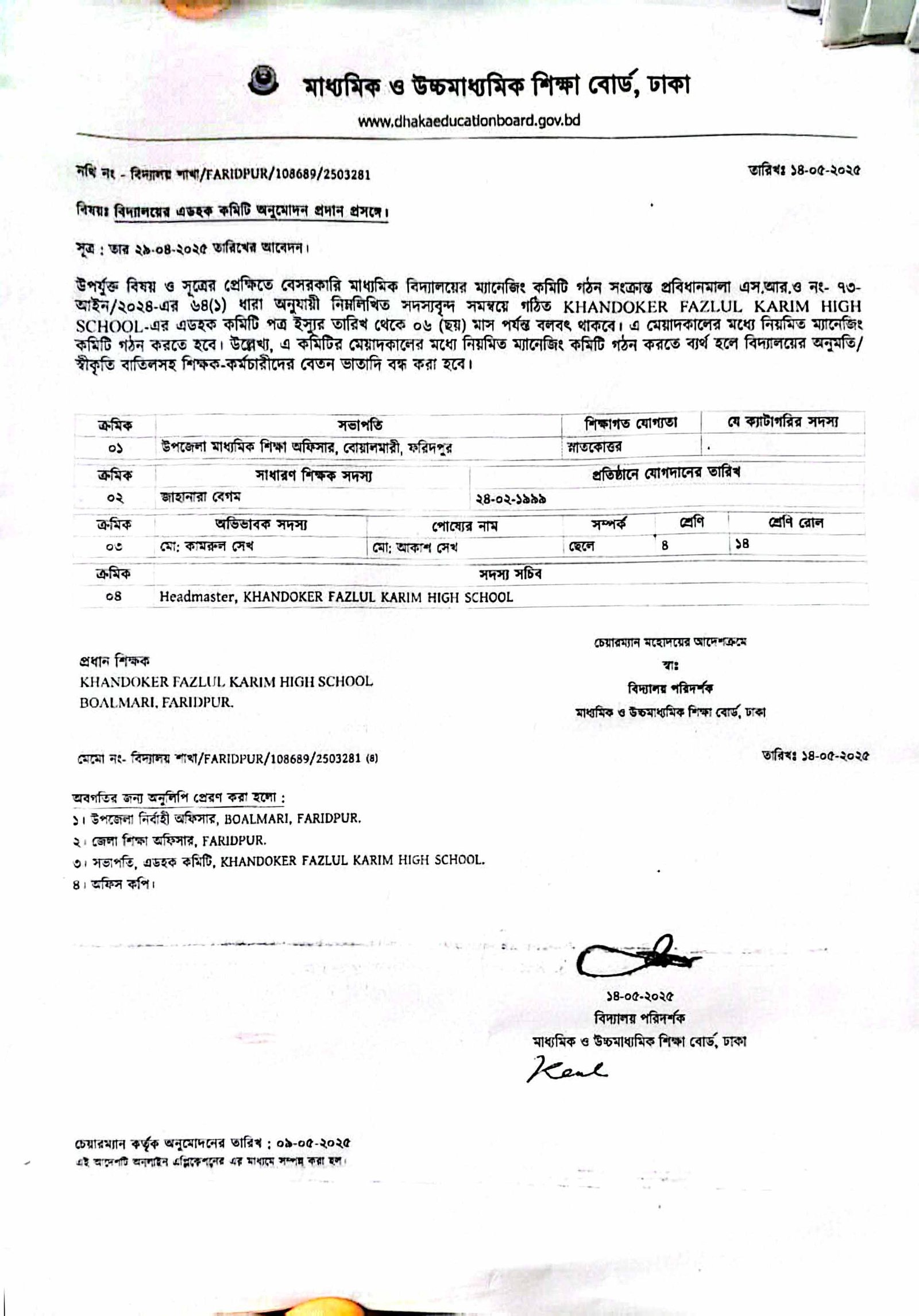 গভার্নিং কমিটির তথ্য